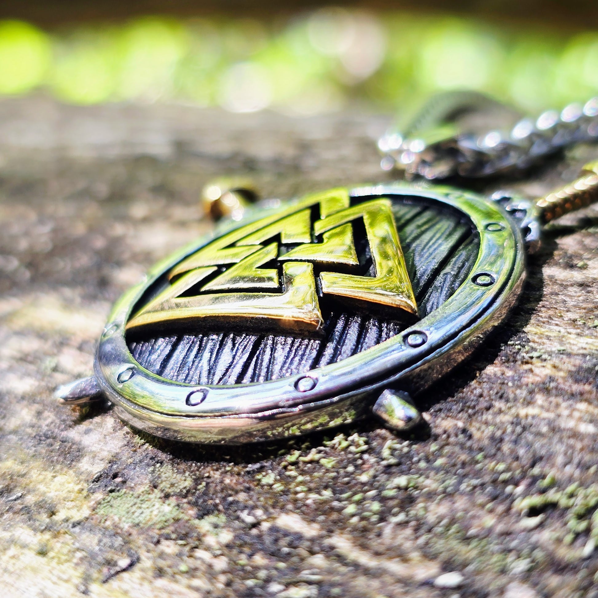 Trage eines der mächtigsten Symbole der nordischen Mythologie mit unserer Valknut-Schild-Halskette.
