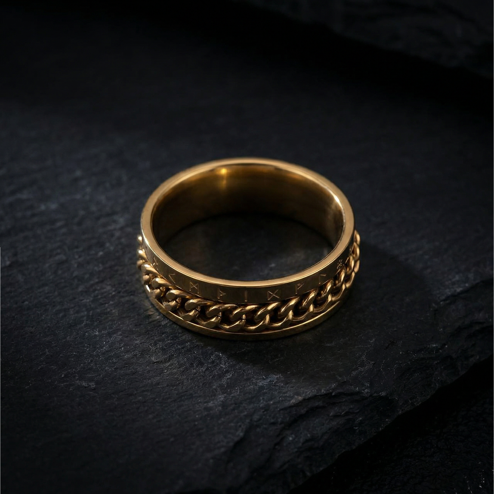 Runic Chainbound Ring Gold