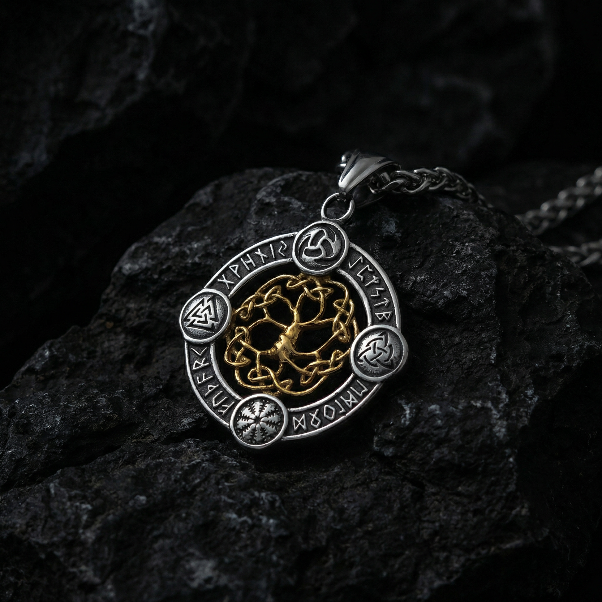 The Yggdrasil Roots Dual Tone necklace reflects the Tree of Life as a symbol of strength, balance, and deep connection.